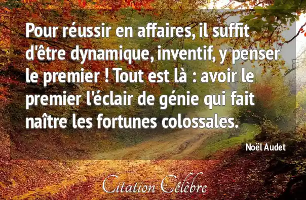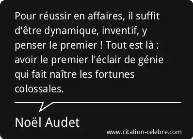 Pour réussir en affaires, il suffit d'être dynamique, inventif, y penser le premier ! Tout est là : avoir le premier l'éclair de génie qui fait naître les fortunes colossales.