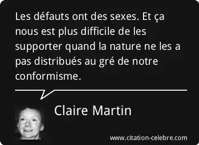 Les défauts ont des sexes. Et ça nous est plus difficile de les supporter quand la nature ne les a pas distribués au gré de notre conformisme.