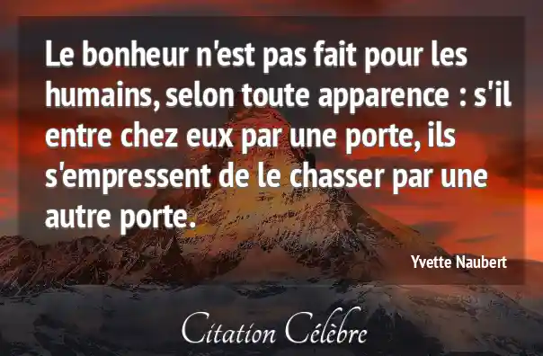 Le bonheur n'est pas fait pour les humains, selon toute apparence : s'il entre chez eux par une porte, ils s'empressent de le chasser par une autre porte.