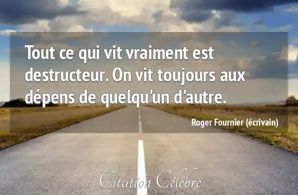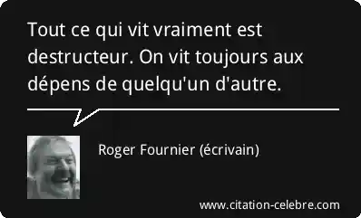 Tout ce qui vit vraiment est destructeur. On vit toujours aux dépens de quelqu'un d'autre.