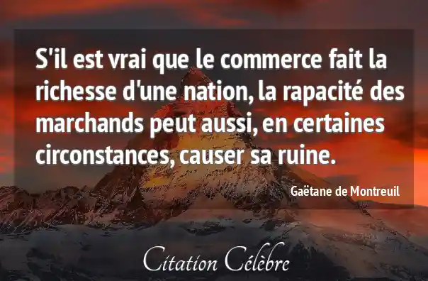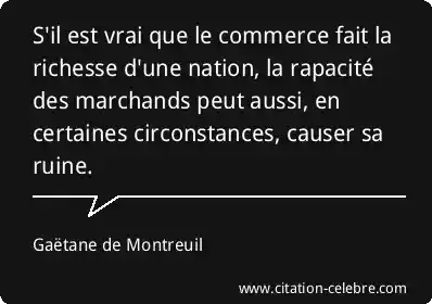 S'il est vrai que le commerce fait la richesse d'une nation, la rapacité des marchands peut aussi, en certaines circonstances, causer sa ruine.