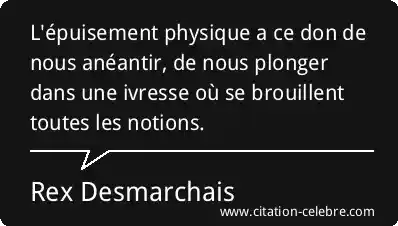 L'épuisement physique a ce don de nous anéantir, de nous plonger dans une ivresse où se brouillent toutes les notions.