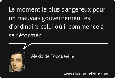 Le moment le plus dangereux pour un mauvais gouvernement est d'ordinaire celui où il commence à se réformer.