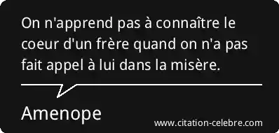 On n'apprend pas à connaître le coeur d'un frère quand on n'a pas fait appel à lui dans la misère.