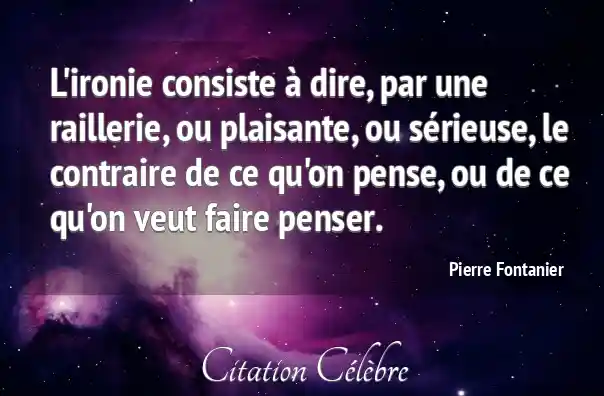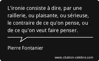 L'ironie consiste à dire, par une raillerie, ou plaisante, ou sérieuse, le contraire de ce qu'on pense, ou de ce qu'on veut faire penser.