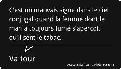 C'est un mauvais signe dans le ciel conjugal quand la femme dont le mari a toujours fumé s'aperçoit qu'il sent le tabac.