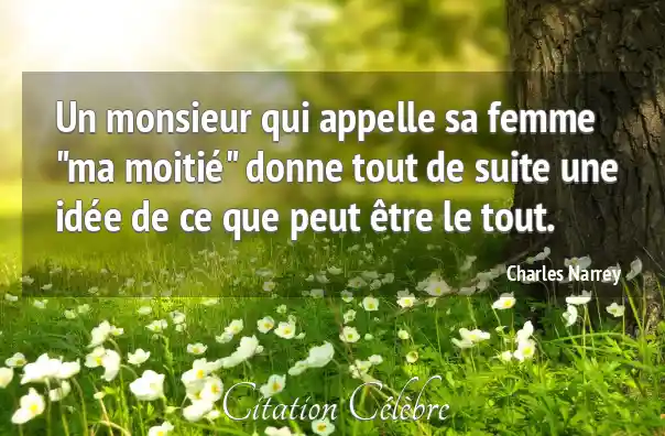 Un monsieur qui appelle sa femme "ma moitié" donne tout de suite une idée de ce que peut être le tout.