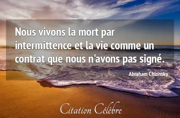 Nous vivons la mort par intermittence et la vie comme un contrat que nous n'avons pas signé.