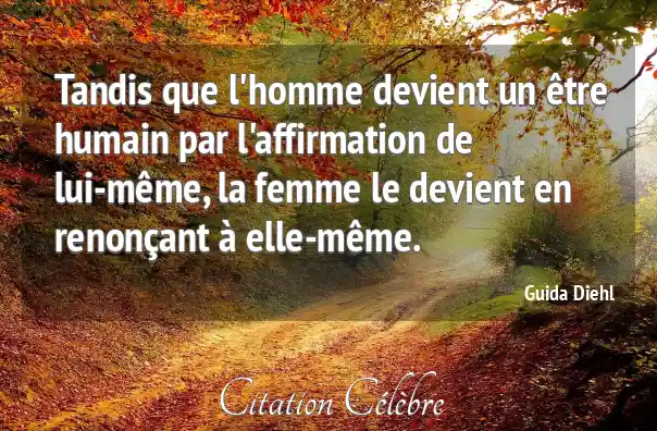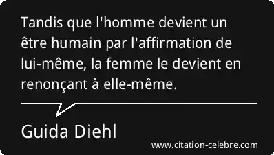 Tandis que l'homme devient un être humain par l'affirmation de lui-même, la femme le devient en renonçant à elle-même.