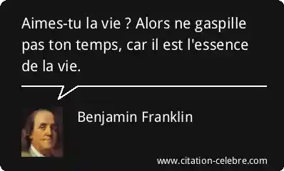 Aimes-tu la vie ? Alors ne gaspille pas ton temps, car il est l'essence de la vie.