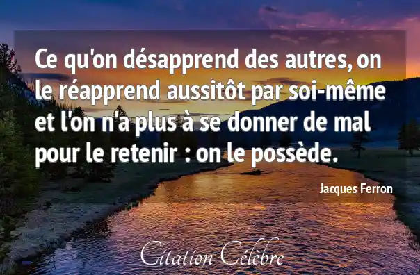 Ce qu'on désapprend des autres, on le réapprend aussitôt par soi-même et l'on n'a plus à se donner de mal pour le retenir : on le possède.