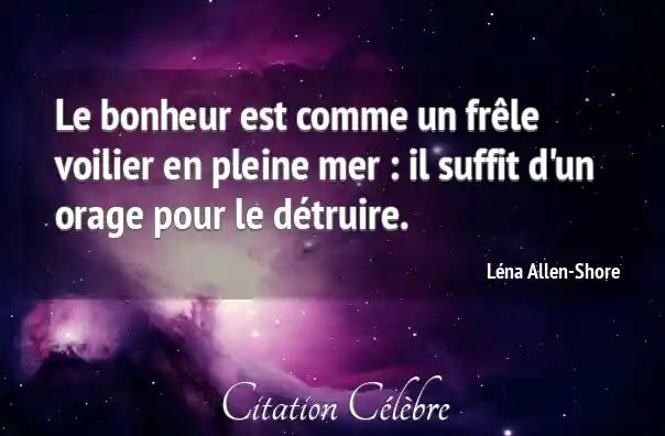 Le bonheur est comme un frêle voilier en pleine mer : il suffit d'un orage pour le détruire.