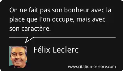 On ne fait pas son bonheur avec la place que l'on occupe, mais avec son caractère.
