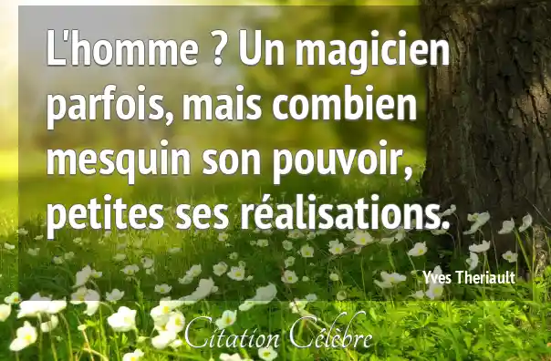 L'homme ? Un magicien parfois, mais combien mesquin son pouvoir, petites ses réalisations.