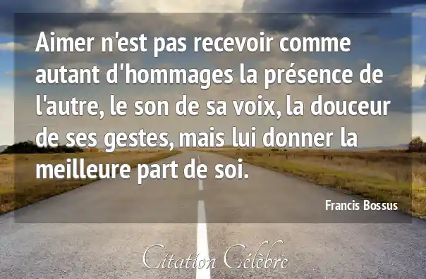 Aimer n'est pas recevoir comme autant d'hommages la présence de l'autre, le son de sa voix, la douceur de ses gestes, mais lui donner la meilleure part de soi.