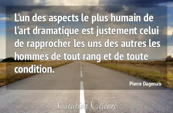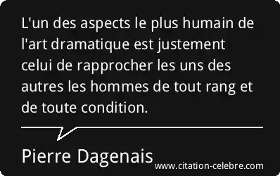 L'un des aspects le plus humain de l'art dramatique est justement celui de rapprocher les uns des autres les hommes de tout rang et de toute condition.