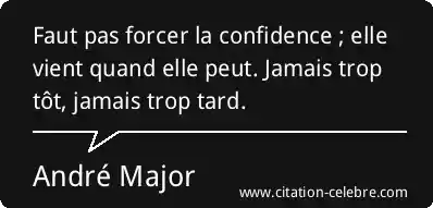 Faut pas forcer la confidence ; elle vient quand elle peut. Jamais trop tôt, jamais trop tard.