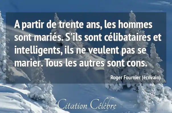 A partir de trente ans, les hommes sont mariés. S'ils sont célibataires et intelligents, ils ne veulent pas se marier. Tous les autres sont cons.
