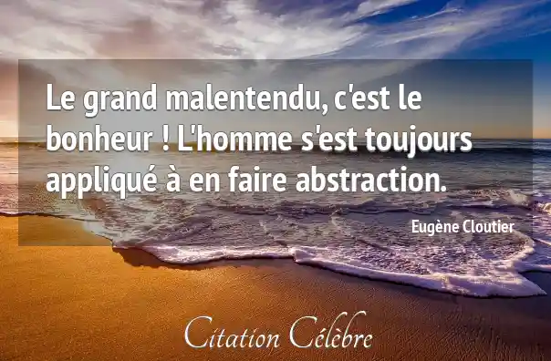 Le grand malentendu, c'est le bonheur ! L'homme s'est toujours appliqué à en faire abstraction.