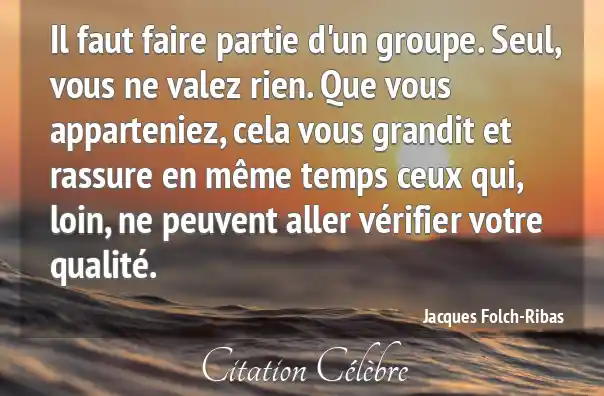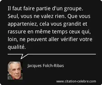 Il faut faire partie d'un groupe. Seul, vous ne valez rien. Que vous apparteniez, cela vous grandit et rassure en même temps ceux qui, loin, ne peuvent aller vérifier votre qualité.