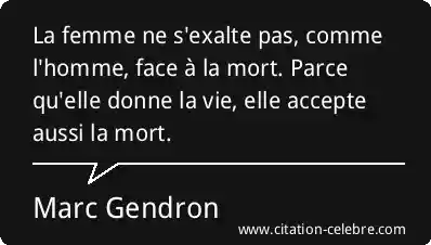 La femme ne s'exalte pas, comme l'homme, face à la mort. Parce qu'elle donne la vie, elle accepte aussi la mort.