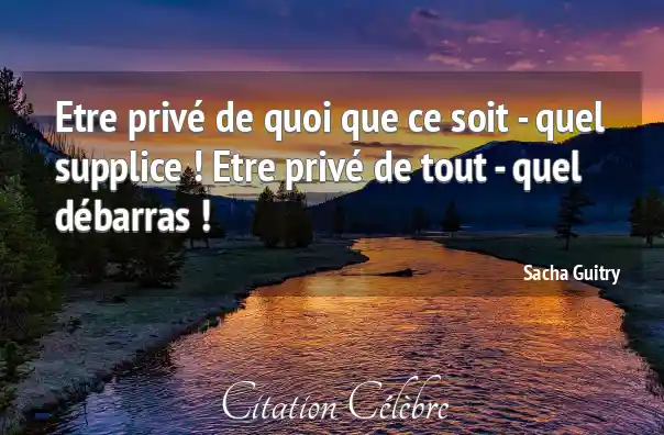 Etre privé de quoi que ce soit - quel supplice ! Etre privé de tout - quel débarras !