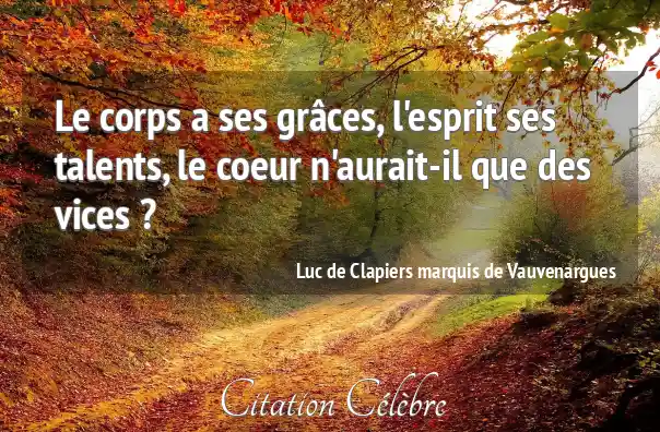 Le corps a ses grâces, l'esprit ses talents, le coeur n'aurait-il que des vices ?