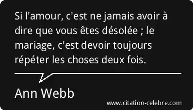Si l'amour, c'est ne jamais avoir à dire que vous êtes désolée ; le mariage, c'est devoir toujours répéter les choses deux fois.