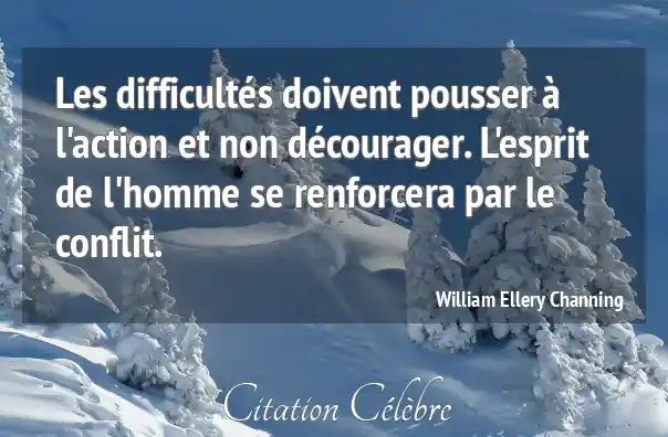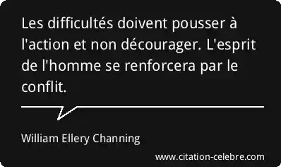 Les difficultés doivent pousser à l'action et non décourager. L'esprit de l'homme se renforcera par le conflit.