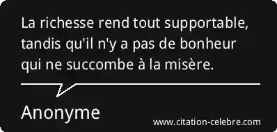 La richesse rend tout supportable, tandis qu'il n'y a pas de bonheur qui ne succombe à la misère.