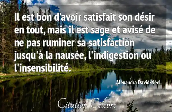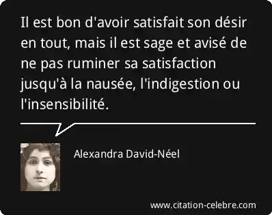 Il est bon d'avoir satisfait son désir en tout, mais il est sage et avisé de ne pas ruminer sa satisfaction jusqu'à la nausée, l'indigestion ou l'insensibilité.