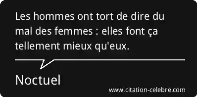 Les hommes ont tort de dire du mal des femmes : elles font ça tellement mieux qu'eux.