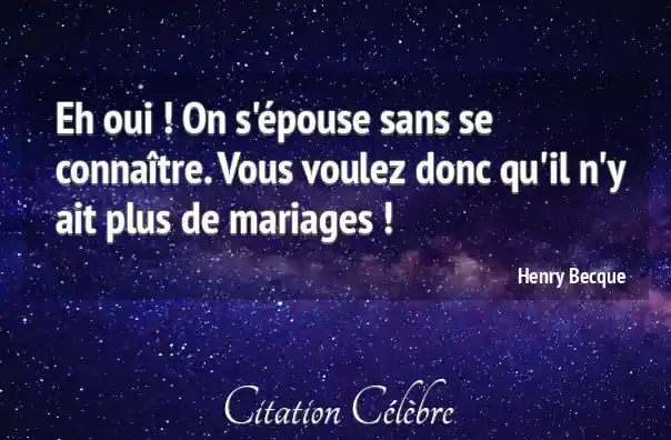 Eh oui ! On s'épouse sans se connaître. Vous voulez donc qu'il n'y ait plus de mariages !