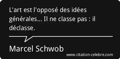 L'art est l'opposé des idées générales... Il ne classe pas : il déclasse.