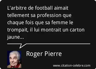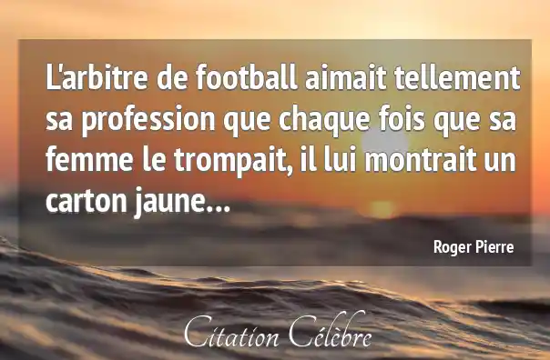 L'arbitre de football aimait tellement sa profession que chaque fois que sa femme le trompait, il lui montrait un carton jaune...