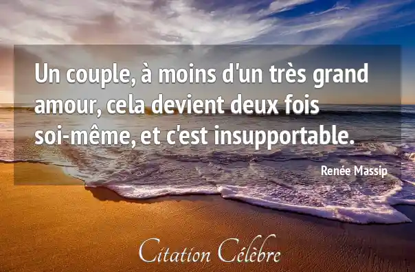 Un couple, à moins d'un très grand amour, cela devient deux fois soi-même, et c'est insupportable.