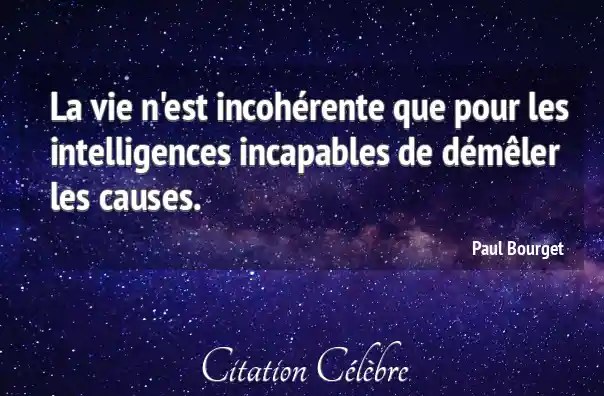 La vie n'est incohérente que pour les intelligences incapables de démêler les causes.