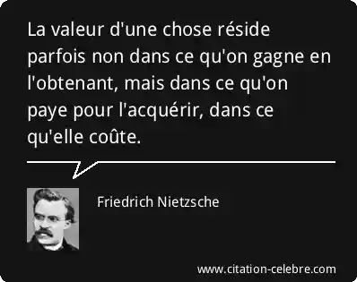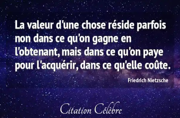 La valeur d'une chose réside parfois non dans ce qu'on gagne en l'obtenant, mais dans ce qu'on paye pour l'acquérir, dans ce qu'elle coûte.