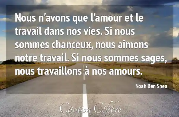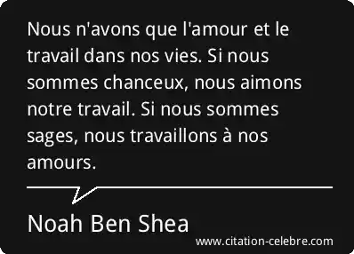 Nous n'avons que l'amour et le travail dans nos vies. Si nous sommes chanceux, nous aimons notre travail. Si nous sommes sages, nous travaillons à nos amours.