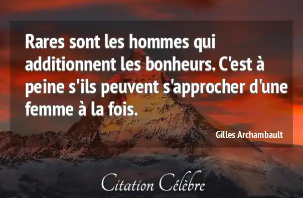 Rares sont les hommes qui additionnent les bonheurs. C'est à peine s'ils peuvent s'approcher d'une femme à la fois.