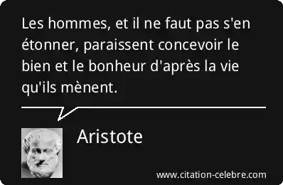 Les hommes, et il ne faut pas s'en étonner, paraissent concevoir le bien et le bonheur d'après la vie qu'ils mènent.