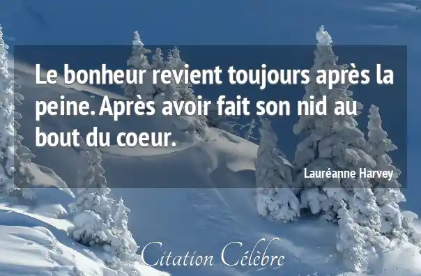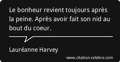 Citation Lauréanne Harvey bonheur : Le bonheur revient toujours après la peine. Après avoir fait...