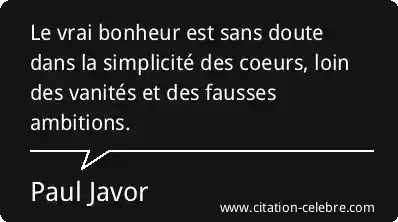 Le vrai bonheur est sans doute dans la simplicité des coeurs, loin des vanités et des fausses ambitions.