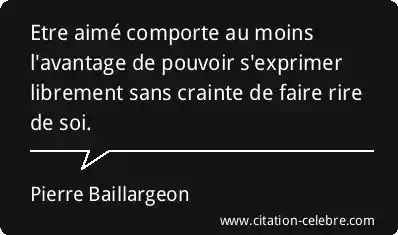 Etre aimé comporte au moins l'avantage de pouvoir s'exprimer librement sans crainte de faire rire de soi.