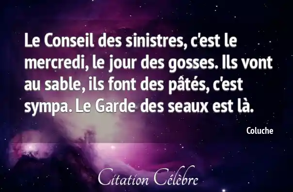 Le Conseil des sinistres, c'est le mercredi, le jour des gosses. Ils vont au sable, ils font des pâtés, c'est sympa. Le Garde des seaux est là.