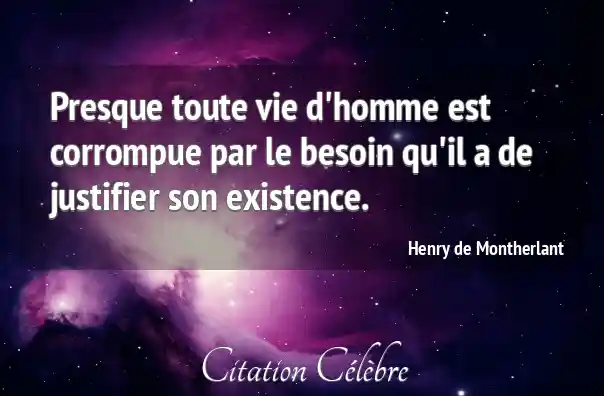 Presque toute vie d'homme est corrompue par le besoin qu'il a de justifier son existence.