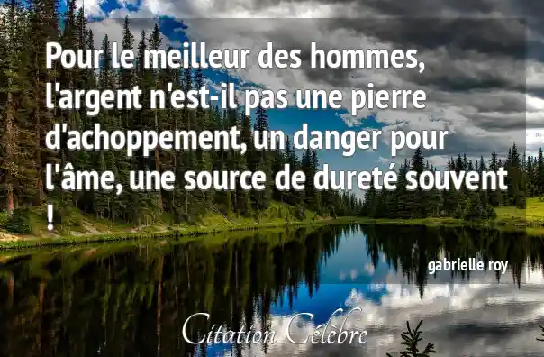 Pour le meilleur des hommes, l'argent n'est-il pas une pierre d'achoppement, un danger pour l'âme, une source de dureté souvent !