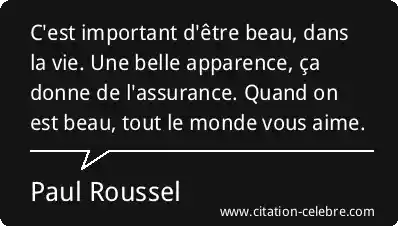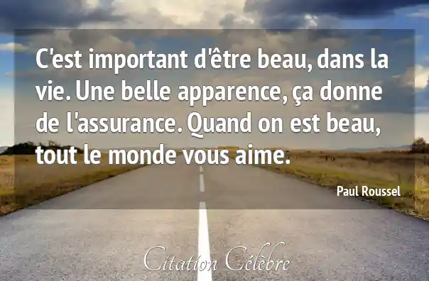 C'est important d'être beau, dans la vie. Une belle apparence, ça donne de l'assurance. Quand on est beau, tout le monde vous aime.
