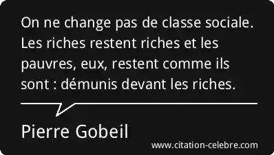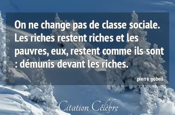 On ne change pas de classe sociale. Les riches restent riches et les pauvres, eux, restent comme ils sont : démunis devant les riches.