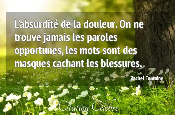 L'absurdité de la douleur. On ne trouve jamais les paroles opportunes, les mots sont des masques cachant les blessures.